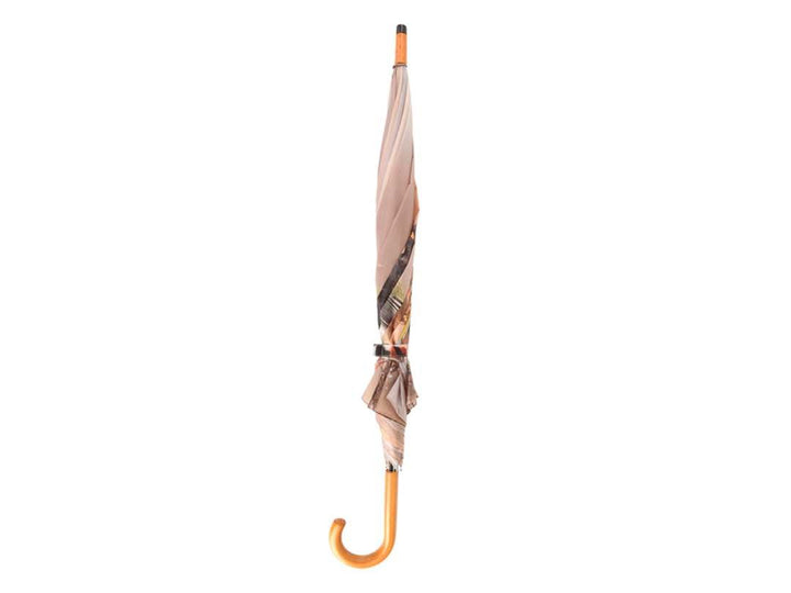This umbrella is provided with prints of birds which overwinter in Europe; blackbird, Blue tit, Common chaffinch, Goldfinch, Greenfinch, tree sparrow, robin and great tit. Wooden handle Opens automatically With winter birds print Dimensions: L 120 x D 120 x H 96 Weight: 436g